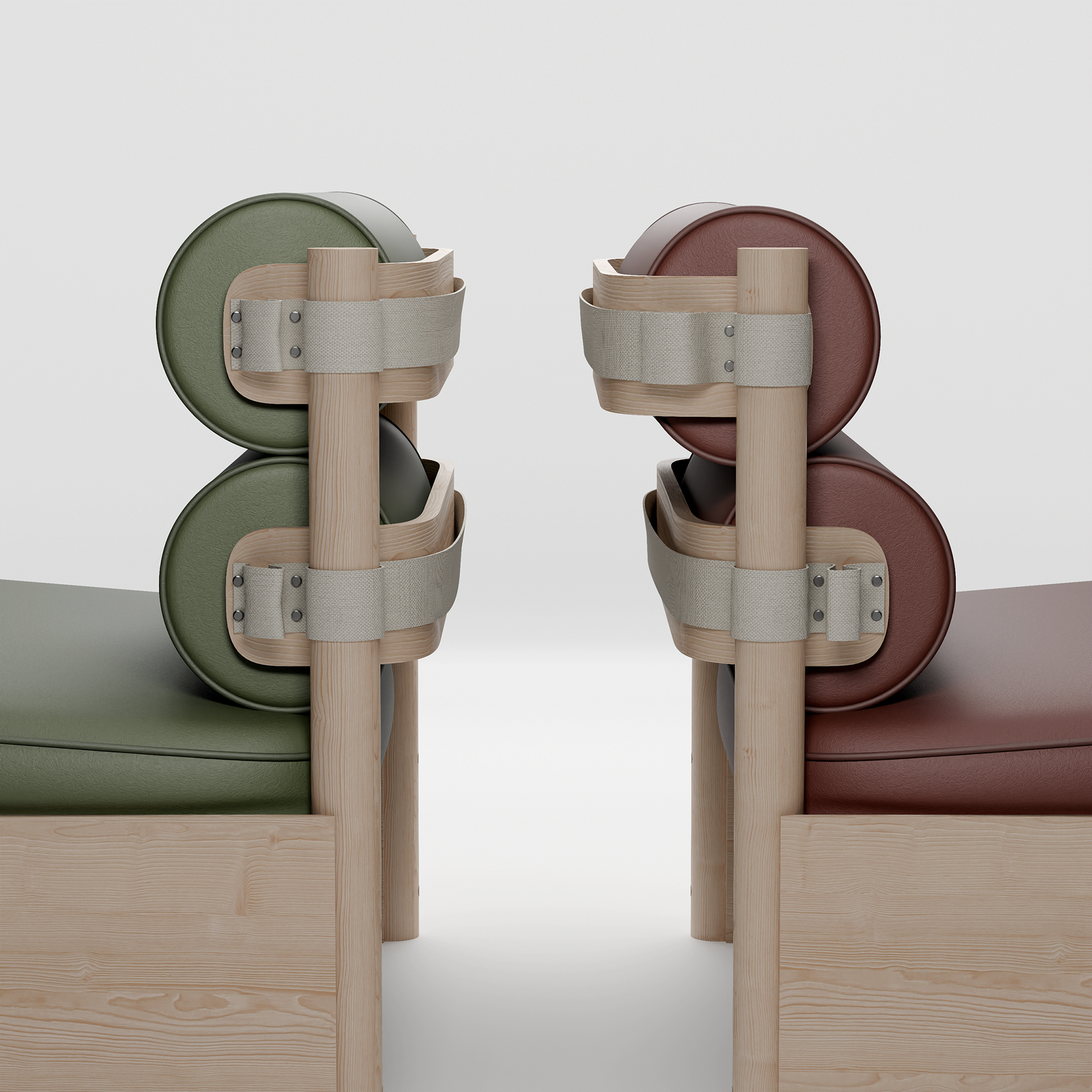 Crafted from solid Swedish pine with a seat in vegetable tanned leather, it balances a warm tactile expression with a sturdy and reassuring structure.